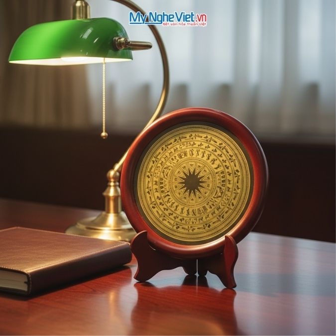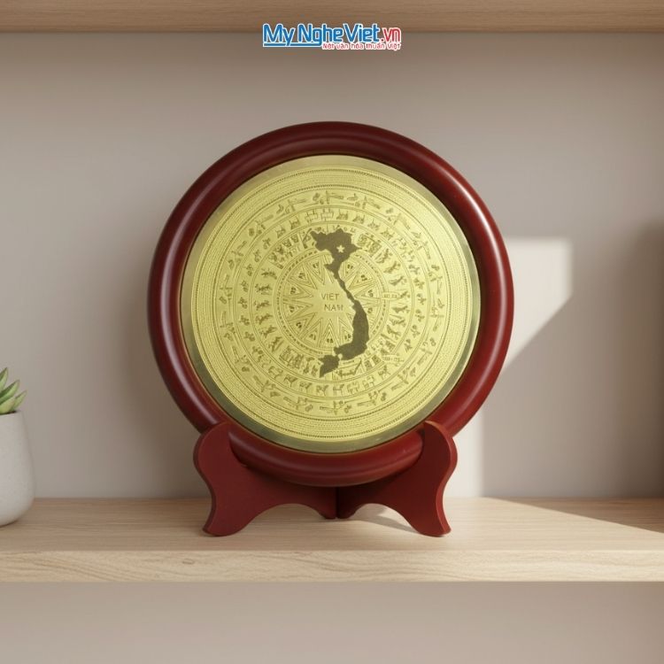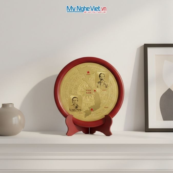 Sản phẩm là sự kết hợp tinh tế giữa nghệ thuật đúc đồng truyền thống và thiết kế hiện đại, phù hợp để bàn làm việc hoặc trang trí không gian văn phòng hội nghị. Tranh đĩa đồng nổi bật với các họa tiết thúc nổi sống động, tái hiện các biểu tượng văn hóa hoặc địa danh Việt Nam, mang đến cảm giác uy nghiêm nhưng không kém phần thanh thoát.