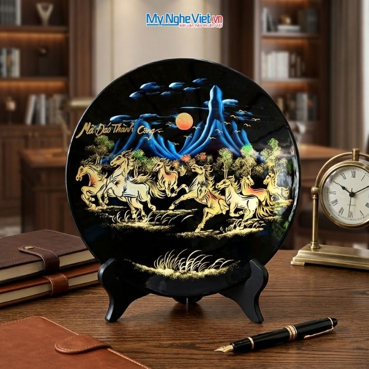 Tranh sơn mài để bàn – Tranh đĩa sơn mài