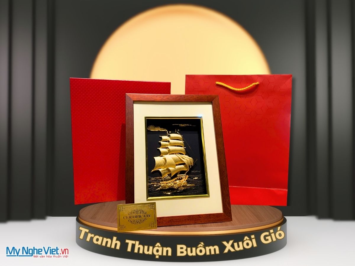 Tranh đồng dát vàng “Thuận buồm xuôi gió” là món quà cao cấp, kết hợp ý nghĩa may mắn, thành công với sự sang trọng, bền vững của chất liệu,