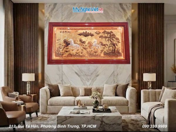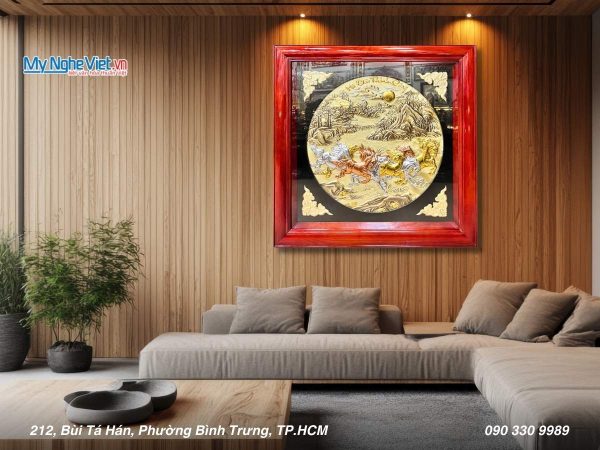 Đưa nghệ thuật truyền thống và phong thủy tài lộc vào không gian sống. Tám chú ngựa mã đáo trong tranh sơn mài không chỉ là biểu tượng của sự thành công, mà còn là lời chúc phát đạt, thăng tiến cho gia chủ